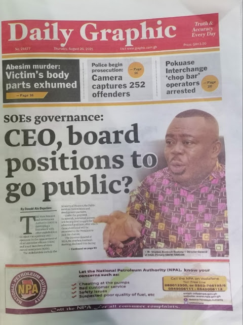 Today's Newspapers Headlines Thursday 26th August, 2021.