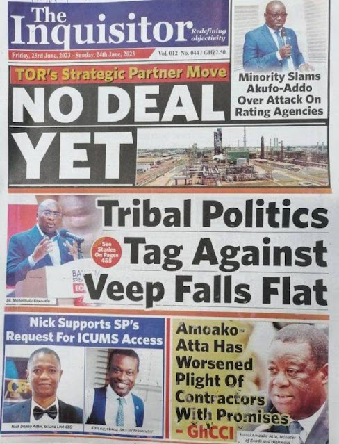 Today's Ghanaian Newspapers Headlines, Friday 23rd June, 2023.